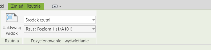 Opisywana funkcjonalność dostępna jest po zaznaczeniu widoku umieszczonego na arkuszu, a następnie przejściu do karty Zmień | Rzutnie i panelu Pozycjonowanie i widok. Możliwe jest tam ustalenie punktu odniesienia do zapamiętania.