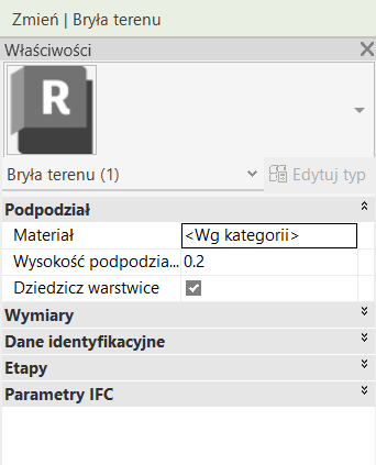 Zmiany dotknęły również bryły terenu (Toposolidy), a w szczególności ich podpodziały. Podpodziały są obecnie nową podkategorią (możemy sterować ich wyświetlaniem za pomocą Nadpisania widoczności) i możemy nadać im dowolny spośród typów rodzin właściwych dla brył terenu.