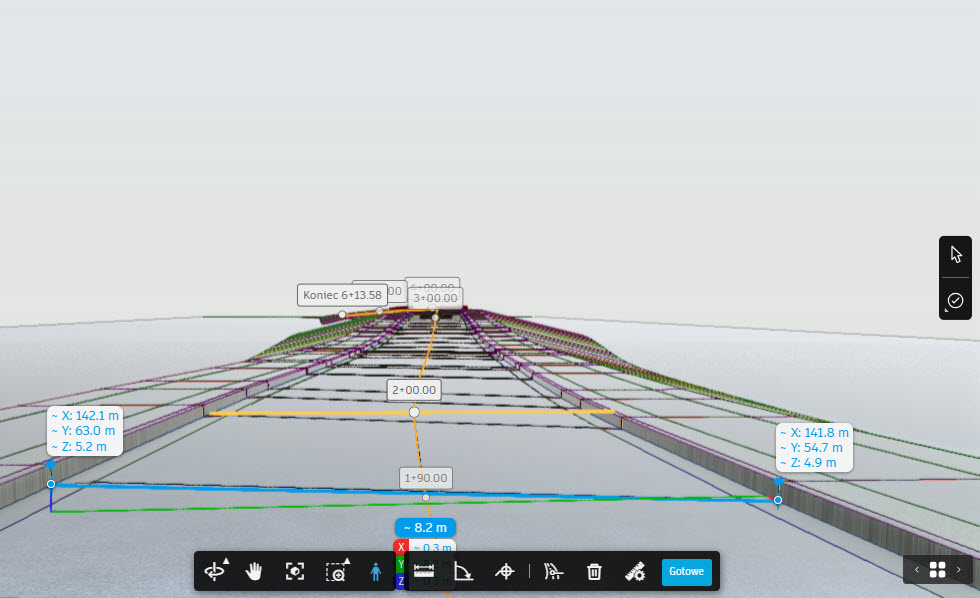 Nadal dostępne są narzędzia na dolnej belce nawigacji – zatem poza obracaniem, powiększaniem i przesuwaniem można uruchomić spacer w pierwszej osobie, dokonywać pomiary liniowe i odczyt współrzędnych punktów.