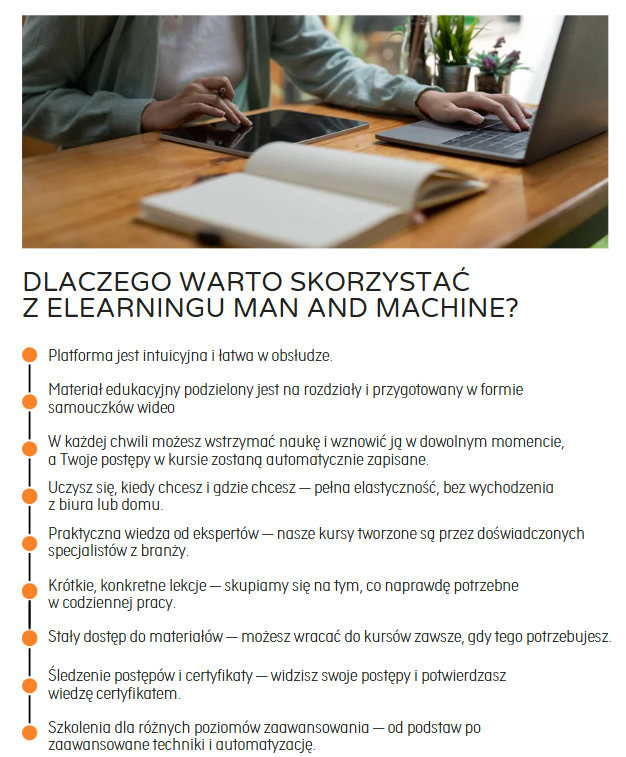 Dzięki platformie eLearningowej Man and Machine zyskasz dostęp do wiedzy, która pomoże Ci szybciej wdrażać nowe rozwiązania i lepiej wykorzystywać potencjał narzędzi takich jak Autodesk Inventor, Revit czy Navisworks.