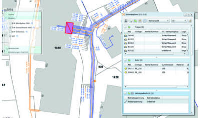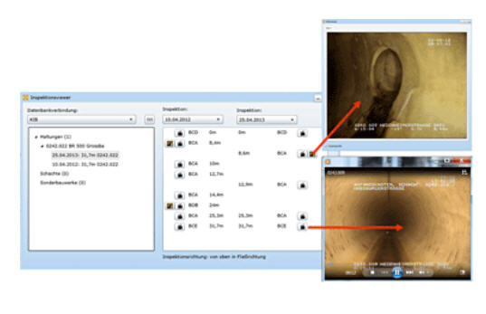 Moduł MapEdit TV Inspection stanowi rozszerzenie MuM Praxispaket Map dedykowane sieciom kanalizacyjnym. Dzięki temu można uzyskać dostęp do wszystkich istotnych informacji, aby przejść przez trasy kanalizacji ściekowej. Zdjęcia lub nagrania dotyczące monitorowania / nieprawidłowego działania mogą być wyświetlane bezpośrednio lub mogą nakładać się na siebie dwie inspekcje.