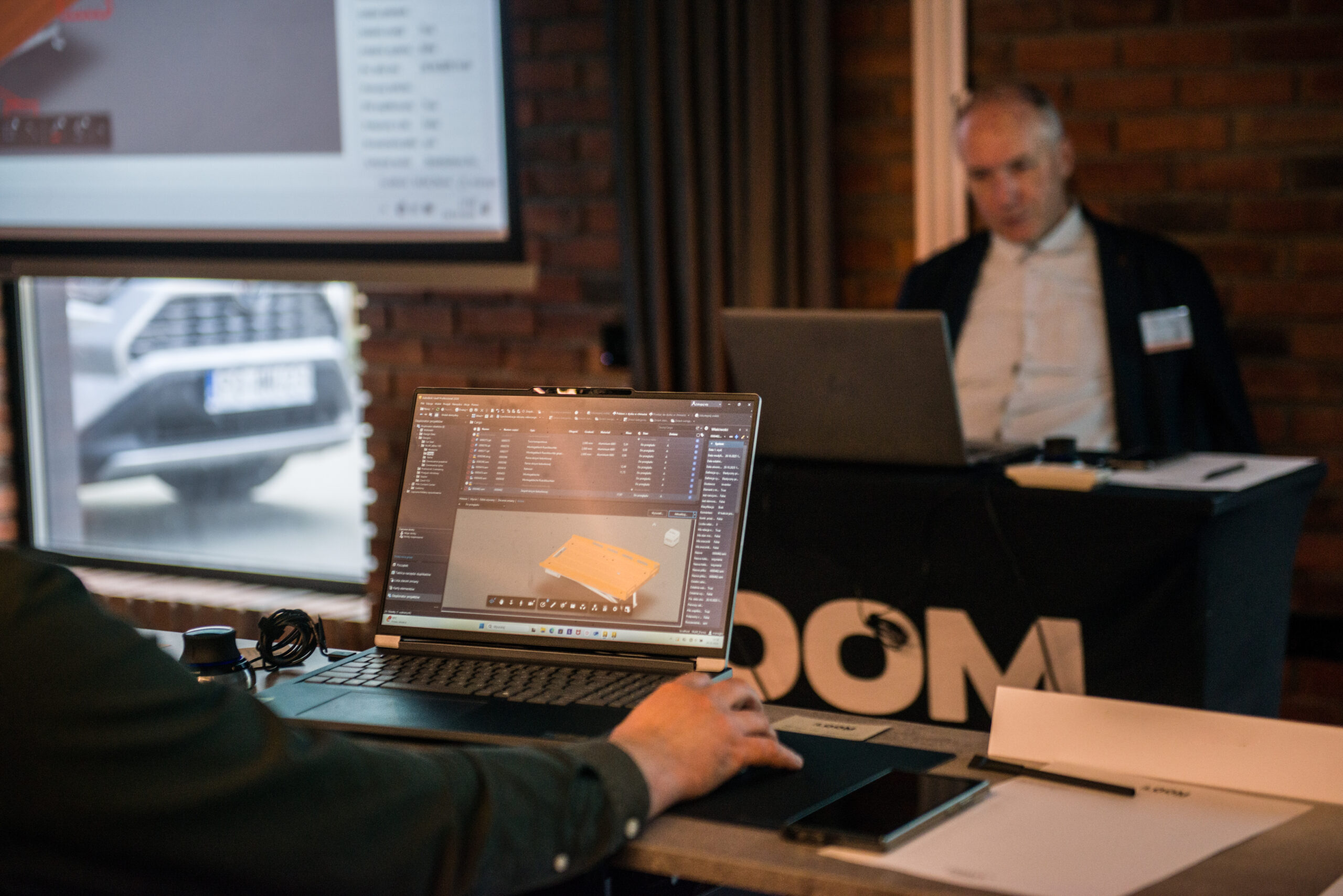 Drugi dzień rozpoczęliśmy stałym rytuałem..tak trudno zgadnąć, że była to kawa i przekąski! Następnie wprowadziliśmy uczestników w tematykę PLM, pokazując nie tylko, czym jest ten system w teorii, ale przede wszystkim – jak realnie wpływa na funkcjonowanie firmy. Uczestnicy mogli zobaczyć, w jaki sposób PLM porządkuje procesy, spina dane z różnych działów, zwiększa transparentność decyzji projektowych i pozwala lepiej kontrolować cały cykl życia produktu – od pierwszego pomysłu aż po produkcję i serwis. Rozmawialiśmy o tym, jak wdrożenie PLM może zmienić sposób współpracy zespołów, skrócić czas wprowadzania produktów na rynek i ograniczyć ryzyko błędów wynikających z pracy na nieaktualnych danych.
