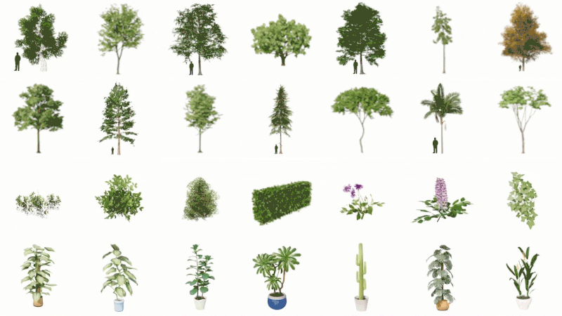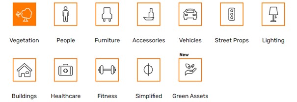 Są wśród nich między innymi rośliny, pojazdy, sylwetki ludzi, obiekty małej architektury, oświetlenie, akcesoria i wiele innych. Możesz też wzbogacać biblioteki o własne obiekty, takie jak popularne meble, sylwetki ludzi, różnorodna roślinność oraz wiele innych!